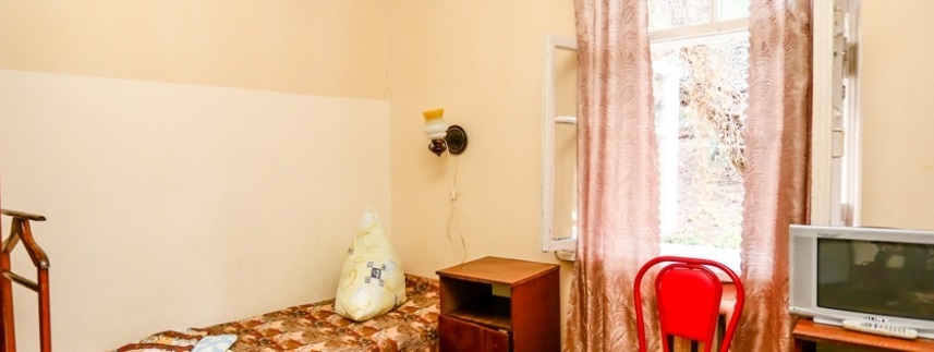 В номере: умывальник, телевизор, кровать, тумбочка, шкаф, вентилятор (по требованию)