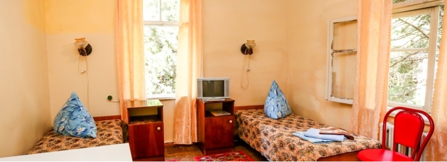 В номере: кровати, шкаф, тумбочка, холодильник, телевизор, вентилятор по требованию