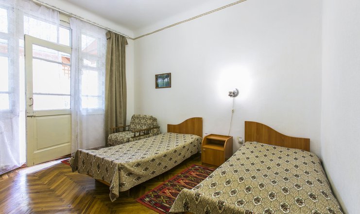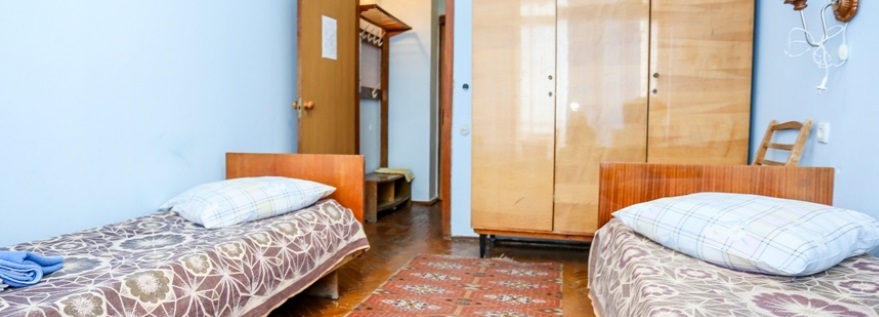 В номере: две кровати, шкаф, стол. вентилятор (по запросу)